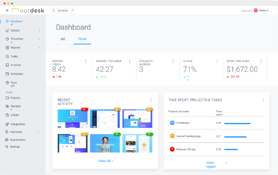 We make it easy to track and manage the activity of your Outdesk team member. Our client portal provides analytics and insights into how your staff members spend their time, how they are progressing on certain projects and tasks and which websites and applications they are utilising through out the day.
